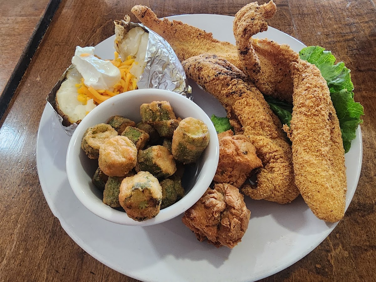 We ended our fishing trip and enjoyed lunch here. We had AMAZING lunch, great service, it was fresh in there, the ice tea is refreshing!! I only took a picture of my food but everyone enjoyed their food! We were a group of 6. Our server has an amazing memory! He took our order got it correct didn't write anything down. Definitely will be back. My catfish was delicious!!!